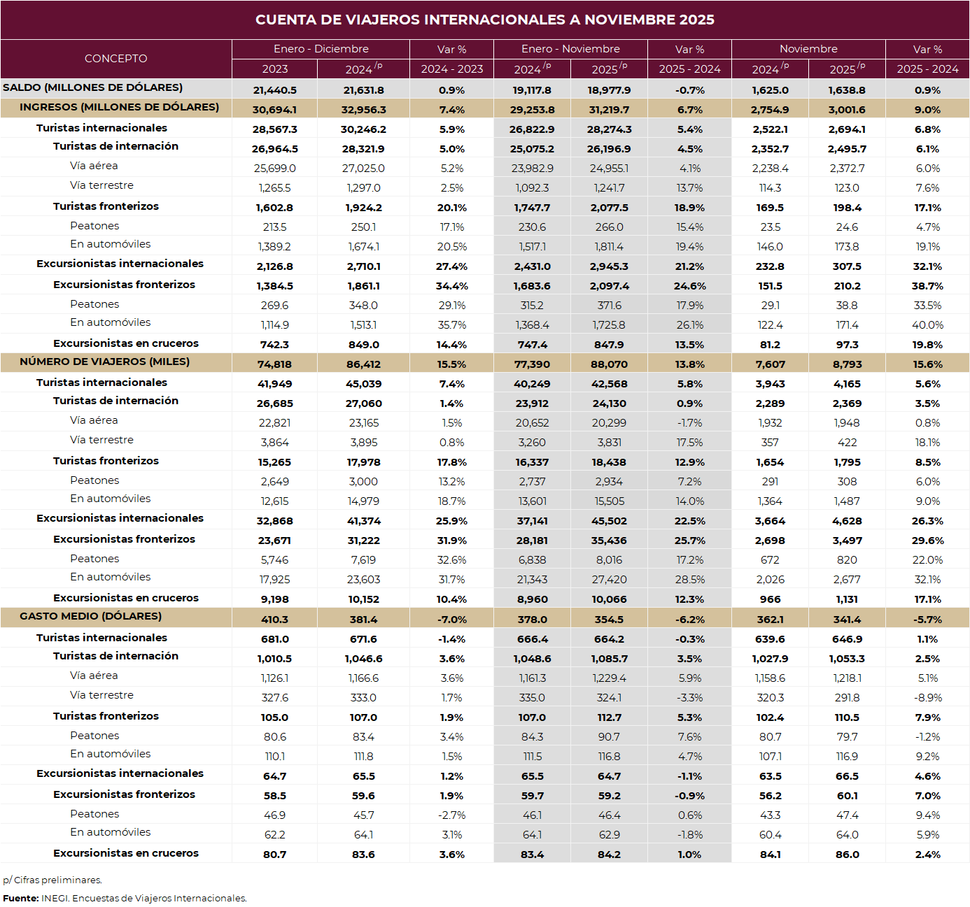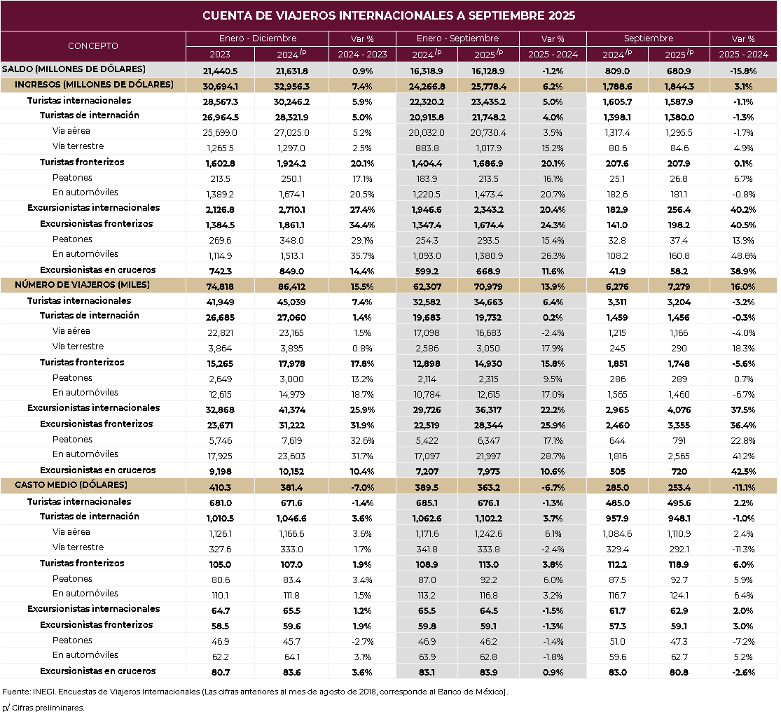 con dos meses de oportunidad, se presentan las cifras sobre la llegada de visitantes internacionales a nuestro país, así como derrama económica.