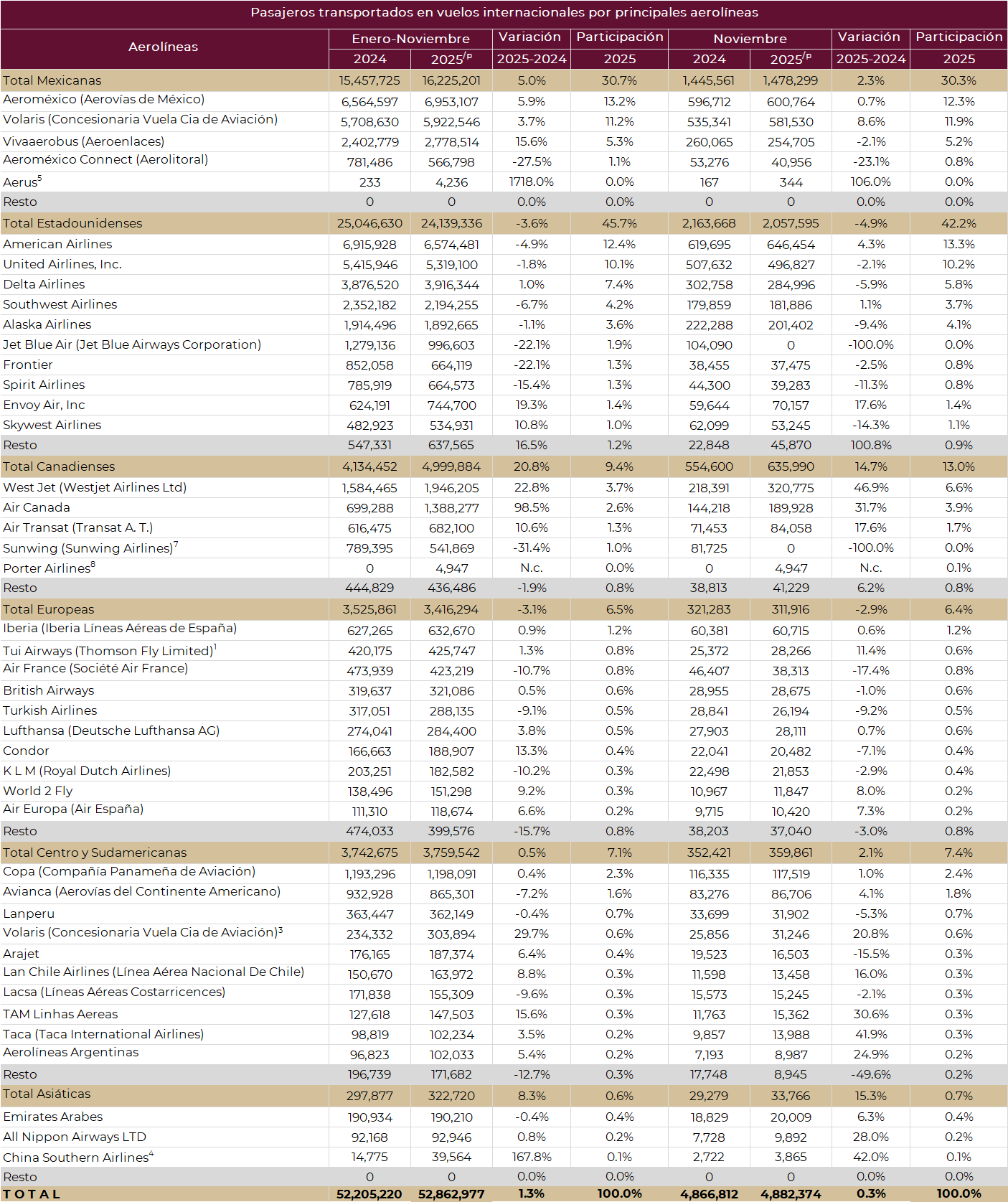 5/ Aerus registra operaciones internacionales a partir de octubre 2024.