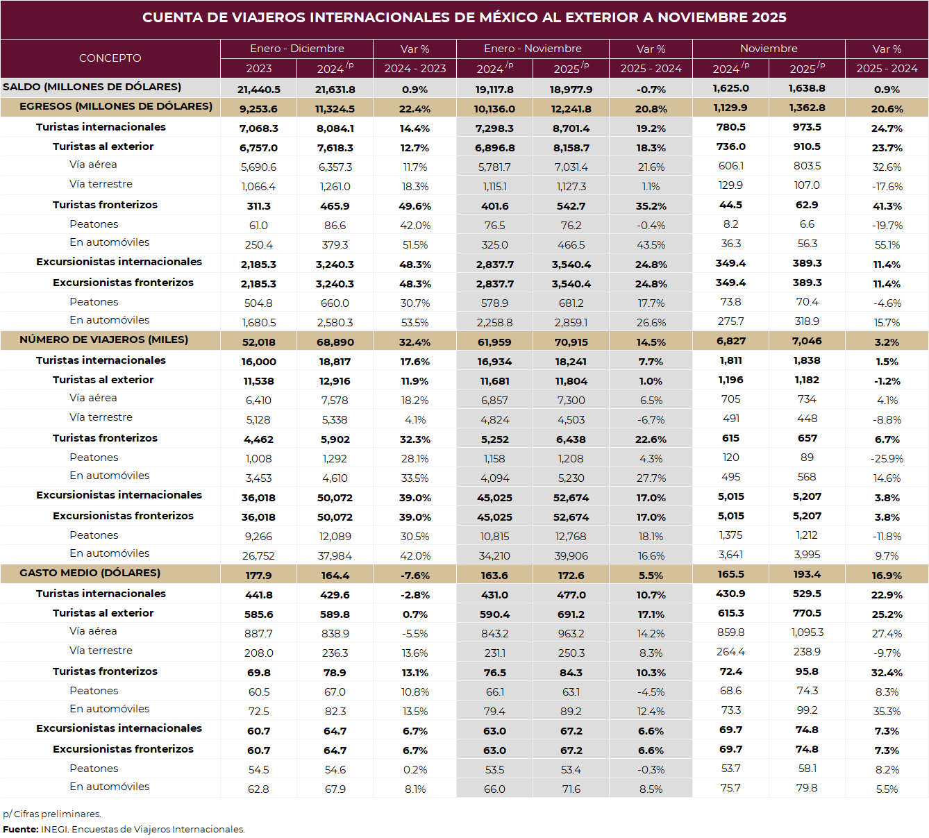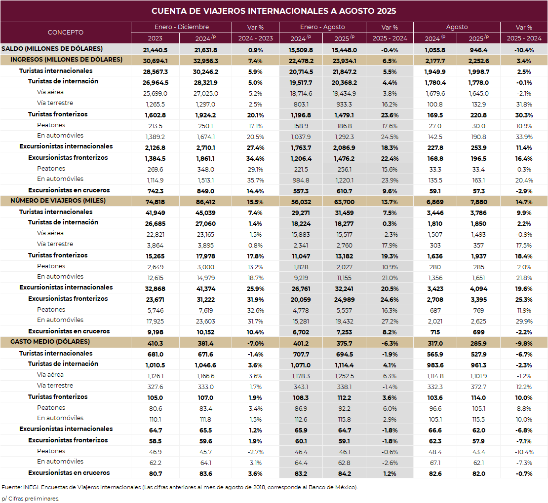 con dos meses de oportunidad, se presentan las cifras sobre la llegada de visitantes internacionales a nuestro país, así como derrama económica.